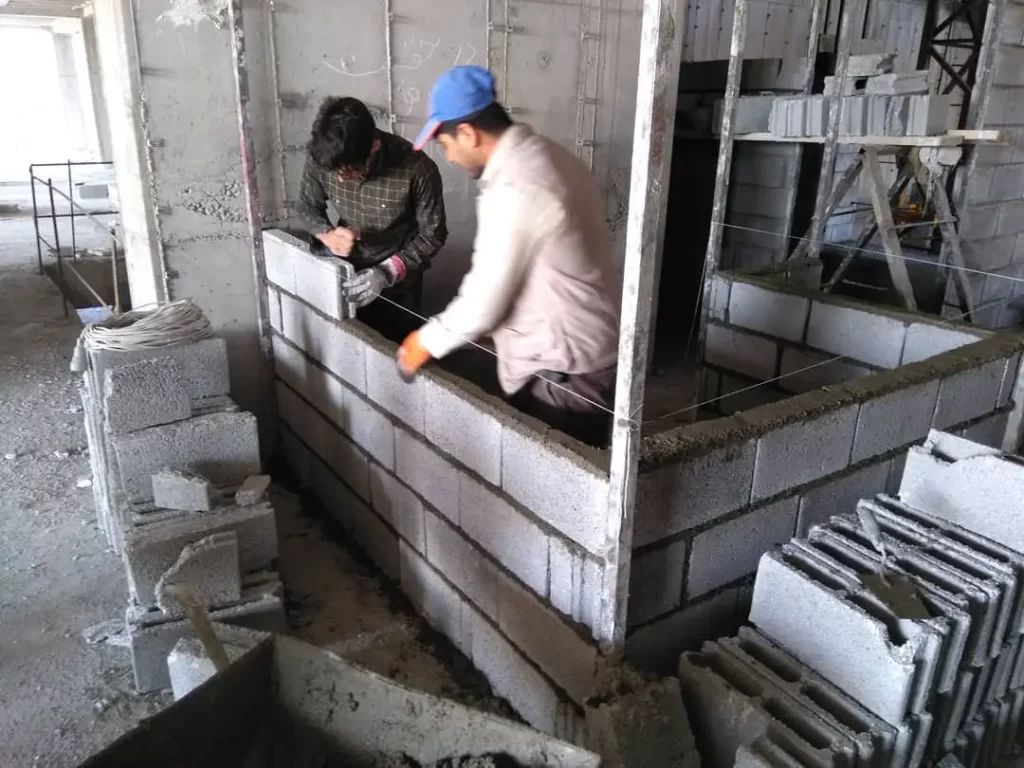 - به مانند دیوارهای خارجی ساختمان، در زمان ساخت باید فاصلهای، بین اسکلت اصلی (ستونهای فلزی و بتونی) و دیوار ایجاد شود. برای ایجاد این فاصله باید از تجهیزات و مقررات لازم تبعیت کرد.